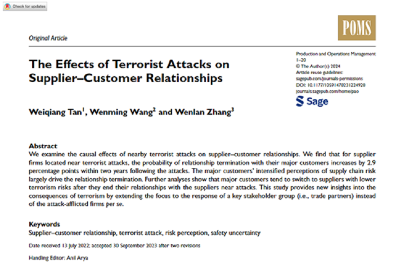 The paper by Associate Professor Wenlan Zhang from the School of Accounting has been accepted for publication in the UTD24 top international journal Production and Operations Management