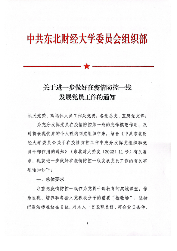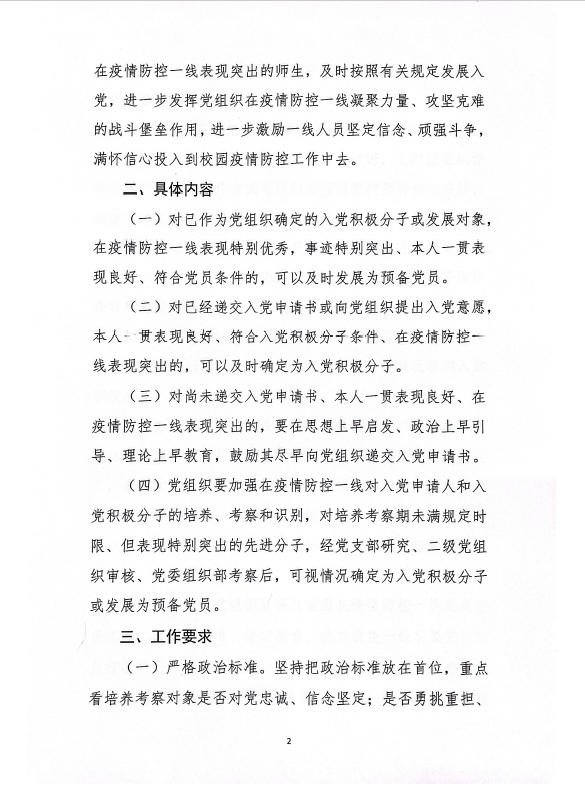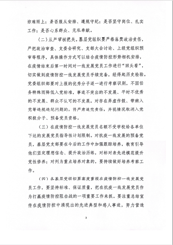 关于进一步做好在疫情防控一线发展党员工作的通知