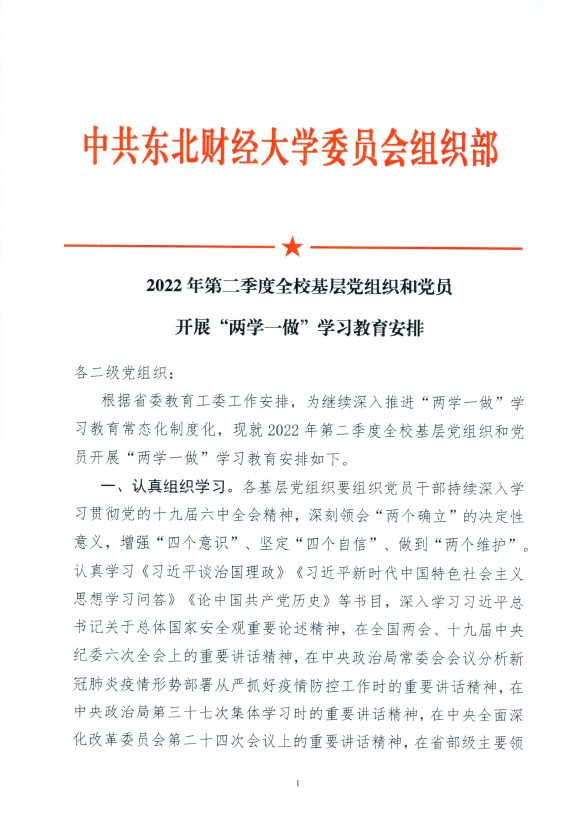 2022年第二季度全校基层党组织和党员开展“两学一做”学习教育安排