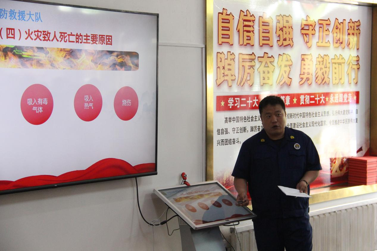 The fire commanders introduced the basic knowledge of firefighting to the students and teachers from four aspects: introduction to the team station, real-life cases of fire, basic knowledge of firefighting, and what to do when a fire occurs. By playing fire rescue videos, explaining fire cases and interpreting fire alarm and escape knowledge, the students and teachers deeply understood fire-related knowledge and skills, cultivated fire safety awareness and mastered fire escape ability.